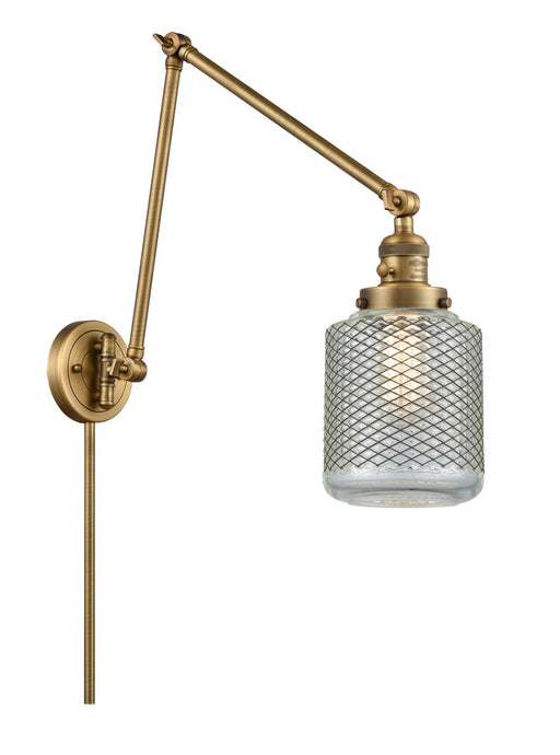Stanton - 1 Light - 6 inch - Brushed Brass - Clear Wire Mesh Shade - Swing ArmDetails:Product Type: Swing Arm-WallFinish: Brushed BrassShade: Clear...