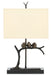 The Sparrow Table Lamp is a whimsical design cast in brass in a bronze finish. The birds perched upon its arching branch and the twig finial prove the talents of our metal artisans. A black marble slab forms the base to ground the bronze lamp that is topped with a honey beige shantung shade.