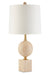 The Adorno Table Lamp is a modern take on a classic design. The beige marble shapes connected by metal elements in an antique brass finish are clean-lined to bring it into the 21st century. The warm finish picks up the darker tones in the veining of the marble to bring texture to the lamp, which is topped with a shade that perfectly reflects the scale of the lamp. Each surface is unique so no two are exactly alike.