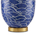 Though its surface is swirling with a motif that was born in an ancient culture, the Nami Table Lamp is just as at home in the 21st century as it was eons ago. The pattern on the body of the blue and white porcelain lamp is a traditional wave pattern. Because the glaze was hand-applied, the evident brush strokes bring it an artisanal richness. The blue table lamp sits atop a metal base in a gold leaf finish and is topped with an off-white linen shade.