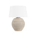 Resembling a found Greek or Roman antique, Kitchawan features a unique ceramic treatment similar to stucco that lends it a raw, organic appearance. Ethereal cloud-like patterns encircle the spherical lamp base, coordinating with the softly tapered white linen drum shade. Aged Brass hardware completes this soothing table lamp.