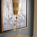 Whether you're setting the Shabby Chic decor for your well -curated design plan or simply adding charming Classic and rustic addition to your entryway or sideboard, this striking buffet table lamp is sure to bring a bit of Whimsical style and Elegance to your space. Featuring a striped distressed wrought iron stem and base awash in a warm gold finish, this buffet table lamp is a perfect blending with Classic Striped Shades and cottage themes, while its up-side-down tapered shade ensures that its single light will give off an ambient glow. Let a pair show off in your master suite on two matching nightstands to find the right ambiance in your restful nest, or make this unique Distressed Gold tall lamp a focal point in your Breakfast or living room nook.