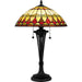 The Sevilla table lamp illuminates your home with shades of honey amber, bisque, burnt orange, and crimson arranged in a bold geometric pattern. The Tiffany glass shade is handcrafted and hand assembled, creating a unique statement piece. The warm color palette pairs with a uniquely shaped matte black base for a classic look.