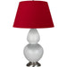 Lily Glazed Ceramic With Antique Silver Finished Accents Double Gourd Table Lamp With Rose Red Fabric Shade with Ink Lining - Our Double Gourd collection features a simple but gracefully curving silhouette. Available in a wide array of vibrant colors and several different base finishes.
