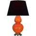 Pumpkin Glazed Ceramic With Antique Silver Finished Accents Double Gourd Table Lamp With Ink Fabric Shade with Rose Red Lining - Our Double Gourd collection features a simple but gracefully curving silhouette. Available in a wide array of vibrant colors and several different base finishes.