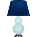 Baby Blue Glazed Ceramic With Antique Silver Finished Accents Double Gourd Table Lamp With Navy Fabric Shade with Gray Lining - Our Double Gourd collection features a simple but gracefully curving silhouette. Available in a wide array of vibrant colors and several different base finishes.