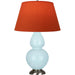 Baby Blue Glazed Ceramic With Antique Silver Finished Accents Double Gourd Table Lamp With Tangerine Fabric Shade with Taupe Lining- Our Double Gourd collection features a simple but gracefully curving silhouette. Available in a wide array of vibrant colors and several different base finishes.