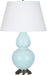Baby Blue Glazed Ceramic With Antique Silver Finished Accents Double Gourd Table Lamp With Pearl Dupioni Fabric Shade - Our Double Gourd collection features a simple but gracefully curving silhouette. Available in a wide array of vibrant colors and several different base finishes.