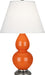 Pumpkin Glazed Ceramic With Antique Silver Finished Accents Small Double Gourd Accent Lamp With Pearl Dupioni Fabric Shade - Our Double Gourd collection features a simple but gracefully curving silhouette. Available in a wide array of vibrant colors and several different base finishes.