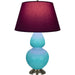Egg Blue Glazed Ceramic With Antique Silver Finished Accents Double Gourd Table Lamp With Plum Fabric Shade with Lavender Lining - Our Double Gourd collection features a simple but gracefully curving silhouette. Available in a wide array of vibrant colors and several different base finishes.