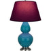 Peacock Glazed Ceramic Double Gourd Table Lamp With Plum Fabric Shade with Lavender Lining - Our Double Gourd collection features a simple but gracefully curving silhouette. Available in a wide array of vibrant colors and several different base finishes.