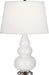 Our Triple Gourd collection features a simple but gracefully curving silhouette. Available in a wide array of vibrant colors and several different base finishes. - Lily Glazed Ceramic With Antique Silver Finished Accents Small Triple Gourd Accent Lamp With Pearl Dupioni Fabric Shade