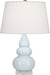 Our Triple Gourd collection features a simple but gracefully curving silhouette. Available in a wide array of vibrant colors and several different base finishes. - Baby Blue Glazed Ceramic With Lucite Base Small Triple Gourd Accent Lamp With Pearl Dupioni Fabric Shade
