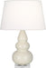 Our Triple Gourd collection features a simple but gracefully curving silhouette. Available in a wide array of vibrant colors and several different base finishes. - Bone Glazed Ceramic With Lucite Base Small Triple Gourd Accent Lamp With Pearl Dupioni Fabric Shade