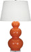 Our Triple Gourd collection features a simple but gracefully curving silhouette. Available in a wide array of vibrant colors and several different base finishes. - Pumpkin Glazed Ceramic With Lucite Base Triple Gourd Table Lamp With Pearl Dupioni Fabric Shade