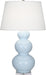 Our Triple Gourd collection features a simple but gracefully curving silhouette. Available in a wide array of vibrant colors and several different base finishes. - Baby Blue Glazed Ceramic With Lucite Base Triple Gourd Table Lamp With Pearl Dupioni Fabric Shade