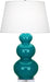 Our Triple Gourd collection features a simple but gracefully curving silhouette. Available in a wide array of vibrant colors and several different base finishes. - Peacock Glazed Ceramic With Lucite Base Triple Gourd Table Lamp With Pearl Dupioni Fabric Shade