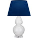Lily Glazed Ceramic With Lucite Base Double Gourd Table Lamp With Navy Fabric Shade with Gray Lining - Our Double Gourd collection features a simple but gracefully curving silhouette. Available in a wide array of vibrant colors and several different base finishes.