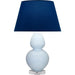 Baby Blue Glazed Ceramic With Lucite Base Double Gourd Table Lamp With Navy Fabric Shade with Gray Lining - Our Double Gourd collection features a simple but gracefully curving silhouette. Available in a wide array of vibrant colors and several different base finishes.