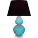 Egg Blue Glazed Ceramic With Lucite Base Double Gourd Table Lamp With Ink Black Fabric Shade with Rose Red Lining - Our Double Gourd collection features a simple but gracefully curving silhouette. Available in a wide array of vibrant colors and several different base finishes.