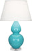Egg Blue Glazed Ceramic With Lucite Base Double Gourd Table Lamp With Pearl Dupioni Fabric Shade - Our Double Gourd collection features a simple but gracefully curving silhouette. Available in a wide array of vibrant colors and several different base finishes.
