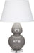 Smokey Taupe Glazed Ceramic With Lucite Base Double Gourd Table Lamp With Pearl Dupioni Fabric Shade - Our Double Gourd collection features a simple but gracefully curving silhouette. Available in a wide array of vibrant colors and several different base finishes.