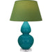 Peacock Glazed Ceramic With Lucite Base Double Gourd Table Lamp With Tea Green Fabric Shade With Taupe Lining - Our Double Gourd collection features a simple but gracefully curving silhouette. Available in a wide array of vibrant colors and several different base finishes.