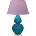 Peacock Glazed Ceramic With Lucite Base Double Gourd Table Lamp With Lavender Fabric Shade with Plum Lining - Our Double Gourd collection features a simple but gracefully curving silhouette. Available in a wide array of vibrant colors and several different base finishes.