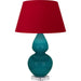 Peacock Glazed Ceramic With Lucite Base Double Gourd Table Lamp With Rose Red Fabric Shade with Ink Lining - Our Double Gourd collection features a simple but gracefully curving silhouette. Available in a wide array of vibrant colors and several different base finishes.