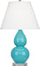 Egg Blue Glazed Ceramic With Lucite Base Small Double Gourd Accent Lamp With Pearl Dupioni Fabric Shade - Our Double Gourd collection features a simple but gracefully curving silhouette. Available in a wide array of vibrant colors and several different base finishes.