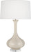Our Pike table lamp will liven up your space with its unique design that incorporates an elongated neck sweeping down into an elegantly scalloped base. Available in an extensive range of colors, you're sure to find one that completes your space flawlessly! - Bone Glazed Ceramic Pike Table Lamp With Pearl Dupoini Fabric Shade
