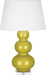 Our Triple Gourd collection features a simple but gracefully curving silhouette. Available in a wide array of vibrant colors and several different base finishes. - Citron Glazed Ceramic With Lucite Base Triple Gourd Table Lamp With Pearl Dupioni Fabric Shade