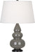 Our Triple Gourd collection features a simple but gracefully curving silhouette. Available in a wide array of vibrant colors and several different base finishes. - Ash Glazed Ceramic With Deep Patina Bronze Finished Accents Small Triple Gourd Accent Lamp With Pearl Dupioni Fabric Shade