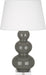 Our Triple Gourd collection features a simple but gracefully curving silhouette. Available in a wide array of vibrant colors and several different base finishes. - Ash Glazed Ceramic With Lucite Base Triple Gourd Table Lamp With Pearl Dupioni Fabric Shade