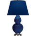 Cobalt Glazed Ceramic With Antique Silver Finished Accents Double Gourd Table Lamp With Navy Fabric Shade with Gray Lining - Our Double Gourd collection features a simple but gracefully curving silhouette. Available in a wide array of vibrant colors and several different base finishes.