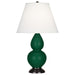 Jungle Glazed Ceramic With Deep Patina Bronze Finished Accents Small Double Gourd Accent Lamp With Pearl Dupioni Fabric Shade - Our Double Gourd collection features a simple but gracefully curving silhouette. Available in a wide array of vibrant colors and several different base finishes.