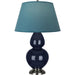 Midnight Blue Glazed Ceramic With Antique Silver Finished Accents Double Gourd Table Lamp With Bright Blue Fabric Shade with Gray Lining - Our Double Gourd collection features a simple but gracefully curving silhouette. Available in a wide array of vibrant colors and several different base finishes.