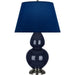 Midnight Blue Glazed Ceramic With Antique Silver Finished Accents Double Gourd Table Lamp With Navy Fabric Shade with Gray Lining Shade - Our Double Gourd collection features a simple but gracefully curving silhouette. Available in a wide array of vibrant colors and several different base finishes.