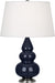 Our Triple Gourd collection features a simple but gracefully curving silhouette. Available in a wide array of vibrant colors and several different base finishes. - Midnight Blue Glazed Ceramic With Antique Silver Finished Accents Small Triple Gourd Accent Lamp With Pearl Dupioni Fabric Shade
