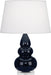 Our Triple Gourd collection features a simple but gracefully curving silhouette. Available in a wide array of vibrant colors and several different base finishes. - Midnight Blue Glazed Ceramic With Lucite Base Small Triple Gourd Accent Lamp With Pearl Dupioni Fabric Shade