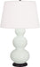 Our Triple Gourd collection features a simple but gracefully curving silhouette. Available in a wide array of vibrant colors and several different base finishes. - Celadon Glazed Ceramic With Deep Patina Bronze Finished Accents Triple Gourd Table Lamp With Pearl Dupioni Fabric Shade