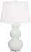 Our Triple Gourd collection features a simple but gracefully curving silhouette. Available in a wide array of vibrant colors and several different base finishes. - Celadon Glazed Ceramic With Lucite Base Triple Gourd Table Lamp With Pearl Dupioni Fabric Shade