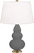 Our Triple Gourd collection features a simple but gracefully curving silhouette. Available in a wide array of vibrant colors and several different base finishes. - Ash Glazed Ceramic With Antique Brass Finished Accents Small Triple Gourd Accent Lamp With Pearl Dupioni Fabric Shade