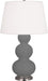 Our Triple Gourd collection features a simple but gracefully curving silhouette. Available in a wide array of vibrant colors and several different base finishes. - Ash Glazed Ceramic With Antique Silver Finished Accents Triple Gourd Table Lamp With Pearl Dupioni Fabric Shade