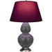 Matte Ash Glazed Ceramic With Antique Silver Finished Accents Double Gourd Table Lamp With Plum Fabric Shade with Lavender Lining - Our Double Gourd collection features a simple but gracefully curving silhouette. Available in a wide array of vibrant colors and several different base finishes.