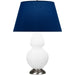 Matte Daisy Ceramic With Antique Silver Finished Accents Double Gourd Table Lamp With Navy Fabric Shade with Gray Lining - Our Double Gourd collection features a simple but gracefully curving silhouette. Available in a wide array of vibrant colors and several different base finishes.