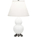 Matte Daisy Glazed Ceramic With Antique Silver Finished Accents Small Double Gourd Accent Lamp With Pearl Dupioni Fabric Shade - Our Double Gourd collection features a simple but gracefully curving silhouette. Available in a wide array of vibrant colors and several different base finishes.