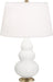 Our Triple Gourd collection features a simple but gracefully curving silhouette. Available in a wide array of vibrant colors and several different base finishes. - Lily Glazed Ceramic With Antique Natural Brass Finished Accents Small Triple Gourd Accent Lamp With Pearl Dupioni Fabric Shade