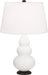 Our Triple Gourd collection features a simple but gracefully curving silhouette. Available in a wide array of vibrant colors and several different base finishes. - Lily Glazed Ceramic With Deep Patina Bronze Finished Accents Small Triple Gourd Accent Lamp With Pearl Dupioni Fabric Shade