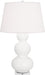Our Triple Gourd collection features a simple but gracefully curving silhouette. Available in a wide array of vibrant colors and several different base finishes. - Lily Glazed Ceramic With Lucite Base Triple Gourd Table Lamp With Pearl Dupioni Fabric Shade